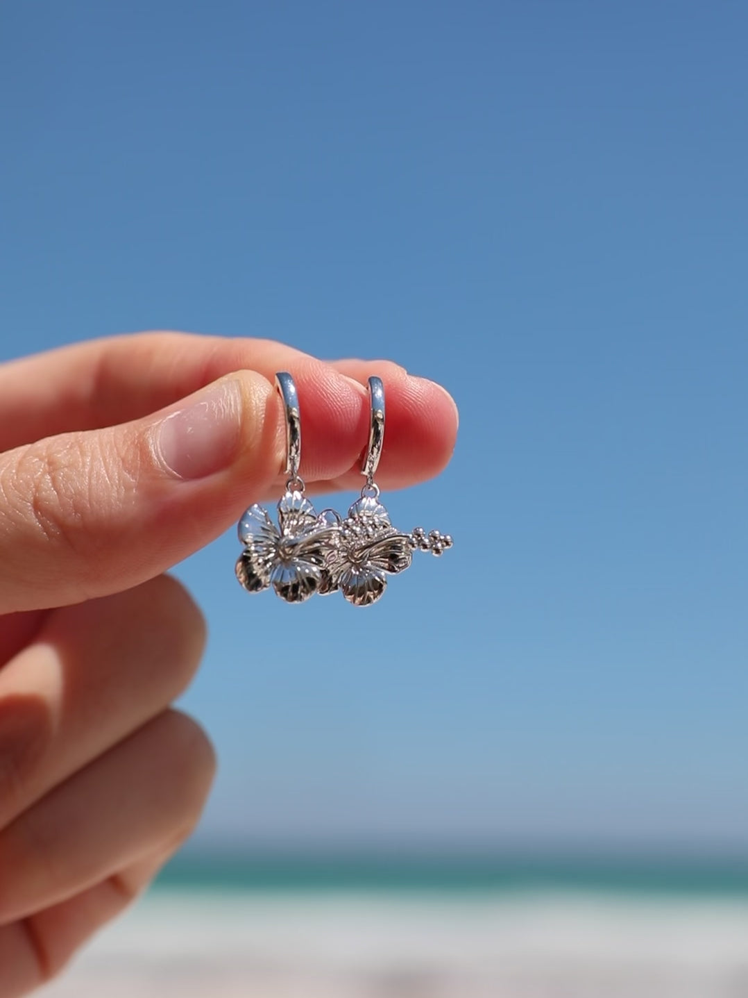 Introducing our Hibiscus Hoop Earrings, encapsulating the beauty of the islands. The Hibiscus Hoop is detailed with a delicate hibiscus flower, perfect for any every day and elegant look