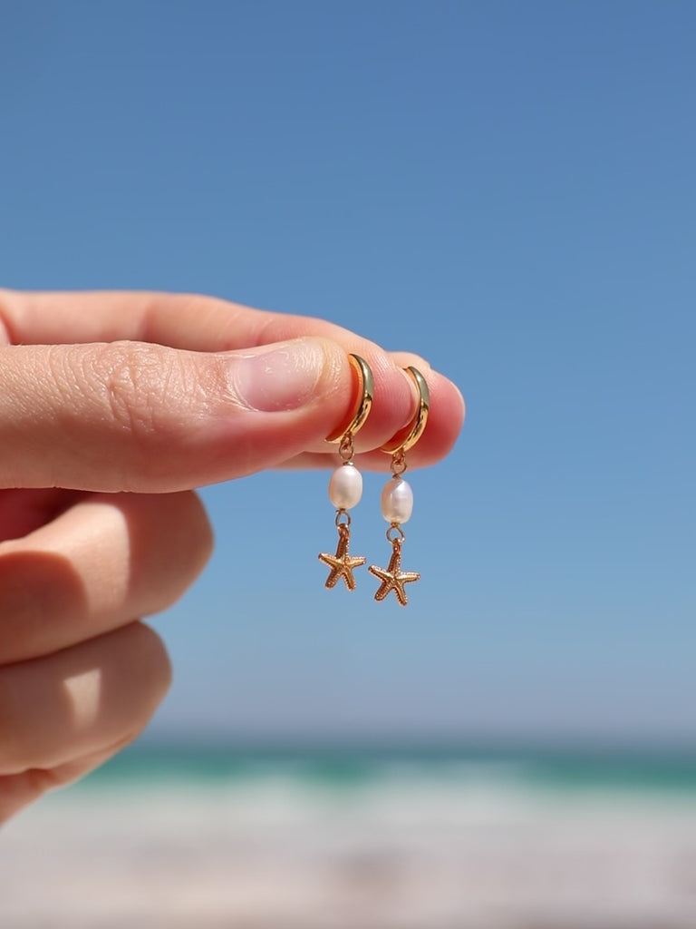 Our Luana hoops are perfect for everyday elegance while encapsulating a coastal essence. A lustrous freshwater pearl hanging above a hand drawn starfish charm, this earring will become a new favourite in your collection.