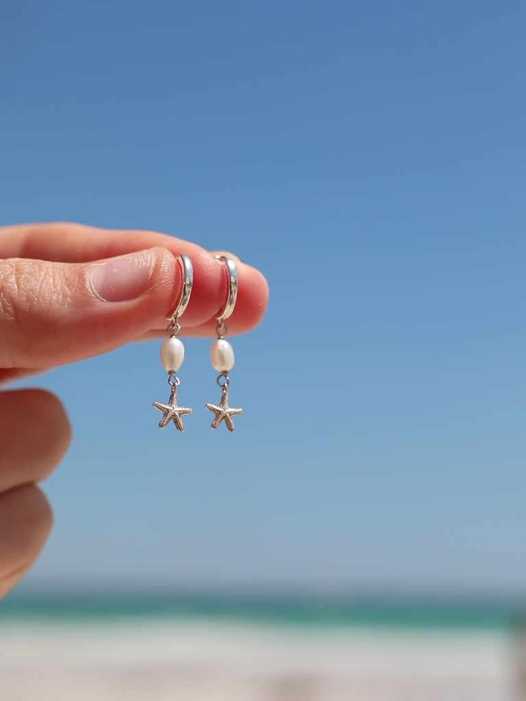 Our Luana hoops are perfect for everyday elegance while encapsulating a coastal essence. A lustrous freshwater pearl hanging above a hand drawn starfish charm, this earring will become a new favourite in your collection.