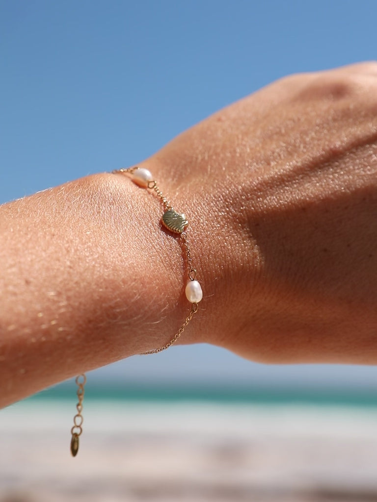 If you share our love for the ocean, you'll be obsessed with our Paralia Palms beachy bracelet. Adorned with shells and pearls, it carries the essence of the sea with you wherever you go.