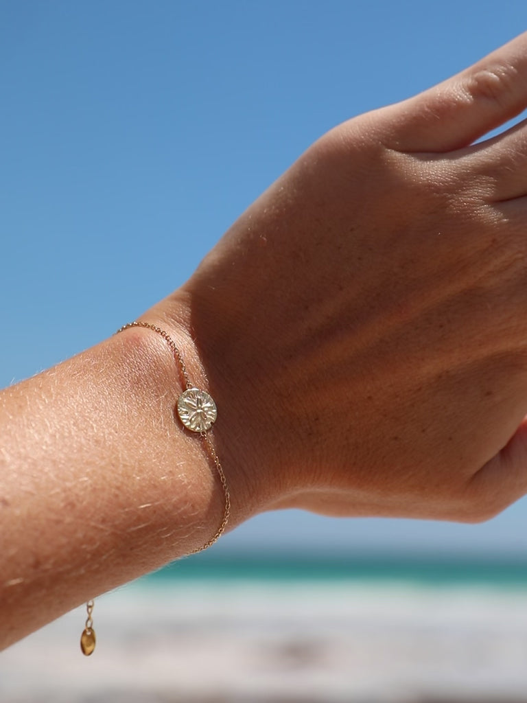 Embrace your journey of personal growth with this stunning sand dollar bracelet. As you navigate life's currents, this sand dollar will serve as a reminder of your progress and inner strength.