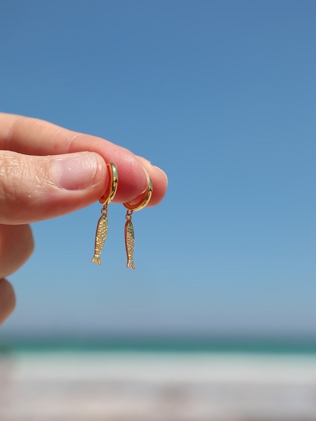 You might not like to eat sardines but we know you'll love wearing these sardine hoops. Reminding you of the sun kissed beaches of Sardinia where ever you go. A stunning yet simple pair of hoop earrings that you can beautifully stack with other earrings or adorn alone.