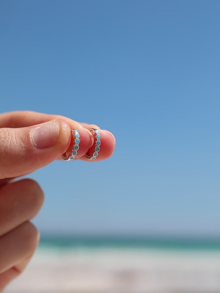 Crafted from ocean-inspired, water resistant materials, Our Waikiki hoops are your new summer essential. They're versatile to be worn alone or stacked with other earrings, the blue stones bringing a essence of colour.